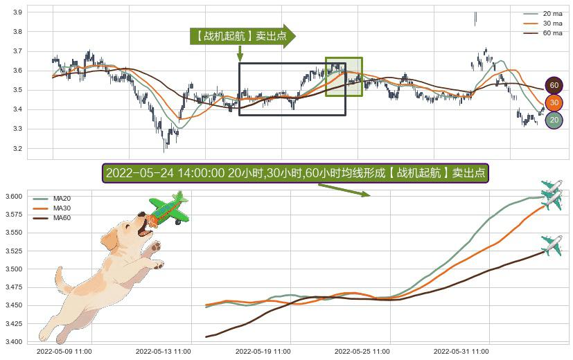 ⚀ 2022-05-16 09:00:00小时-2022-06-02 13:00:00小时显现 20小时-30小时-60小时均线 【战机起航】卖出点 看空信号,后市看跌,卖出