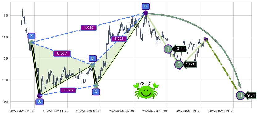 ➣ 已完成【螃蟹】形态起点X: 04-22:13, 终点D: 06-15:13, 共173交易小时