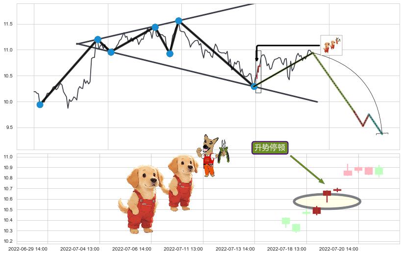 ➢ 收盘价(07-11:14: 10.63 )→回踩→第二根k线高点(07-11:13: 10.61 )