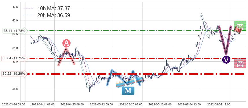 ♘ 阻力价格位38.11,可信任强度61.13%,距离最后交易2022-08-12 14:00形成的收盘价格37.44相差 +1.78%