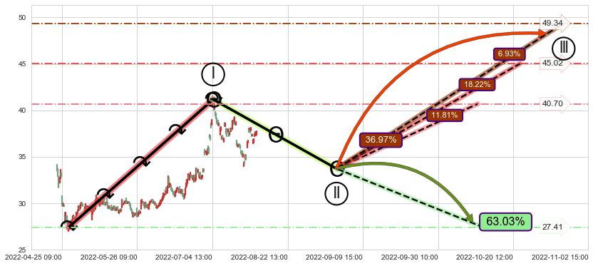 ♘ 支撑价格位33.04,可信任强度59.93%,距离最后交易2022-08-12 14:00形成的收盘价格37.44相差 -11.75%