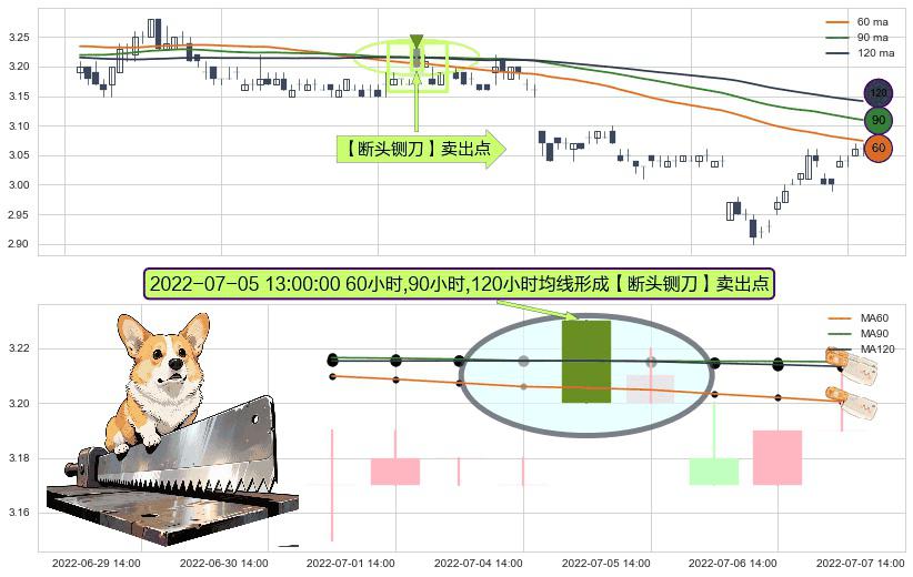 ⚀ 2022-07-05 13:00:00小时显现 60小时-90小时-120小时均线 【断头铡刀】卖出点 看空信号,后市看跌,卖出