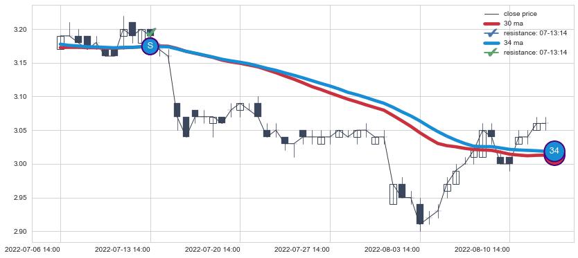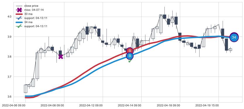 ⚃ 在破位点附近ma走势明显平稳迹象,稍后的走势中ma下垂迹象也出现,信号【可信度中等偏上】