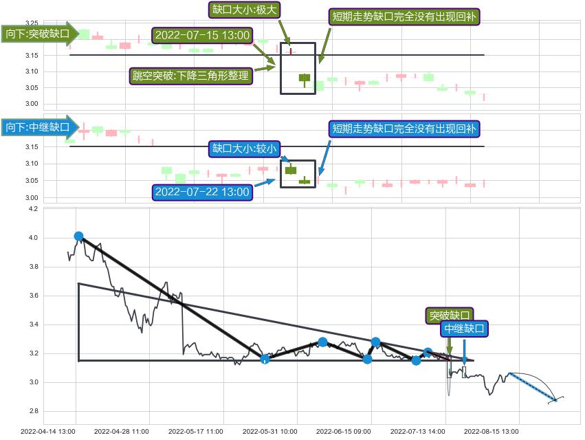 ➢ 2022-07-22 13:00形成:向下跳空【中继】缺口