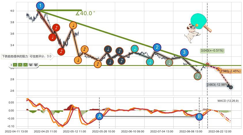 ➢ 预测:2022-08-17 11:00,【试探阻力】稳定目前下跌趋势的前提下,预测价格:2.985