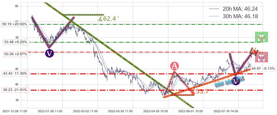 ♘ 支撑价格位43.42,可信任强度66.53%,距离最后交易2022-08-12 14:00形成的收盘价格48.95相差 -11.30%