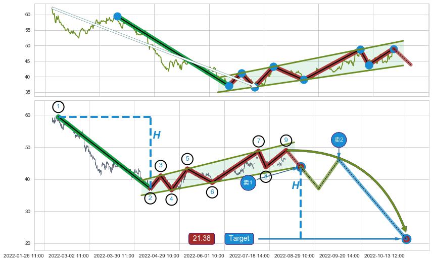 ➣ 最小中继整理跌幅→𝐇: 22.43 (𝐇旗杆的长度:旗杆起点→顶点)