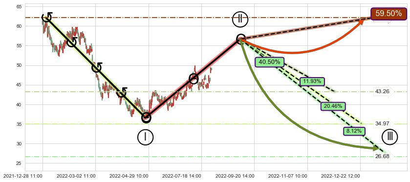 ➢ 高概率大级别循环下跌浪被破坏,反转向上(突破5浪起点)概率59.50%