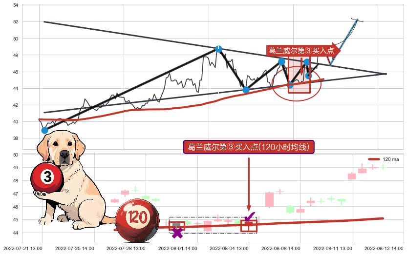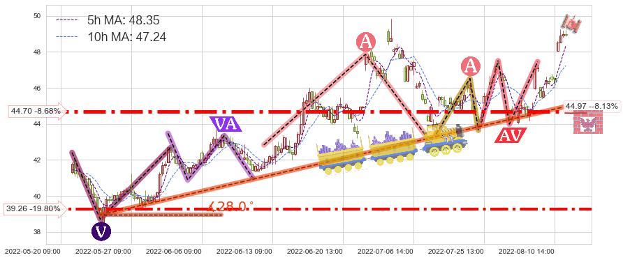 ➢ 08-05:13到达第❶价格目标位置47.07