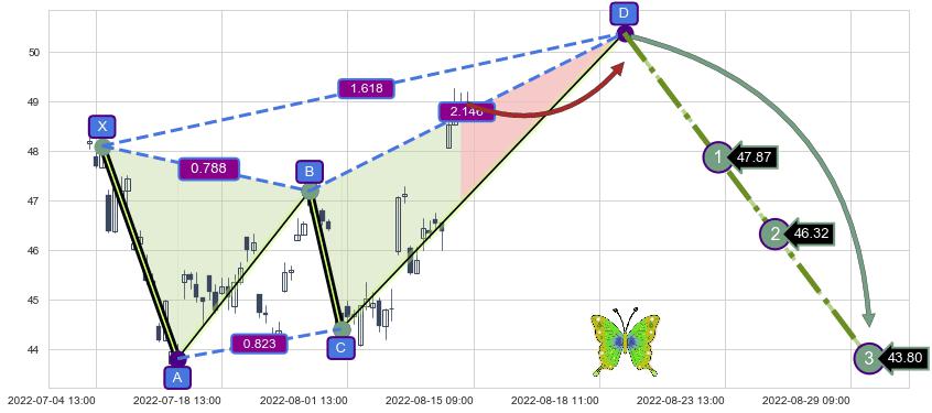 ➣ 未完成【蝴蝶】形态起点X: 07-04:14, 已到达C点: 07-29:14, 预测最终D点: 08-19:09, 共83交易小时