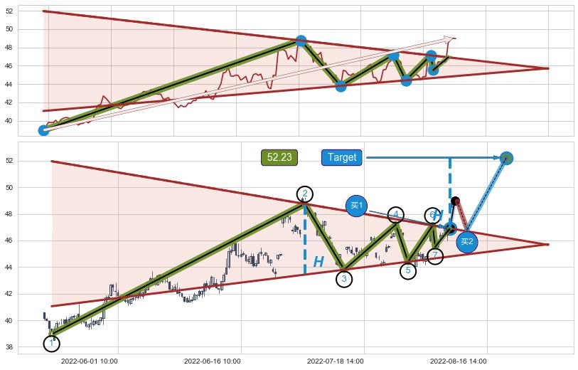 ➣ 08-05:14到达第❷价格目标位置47.13
