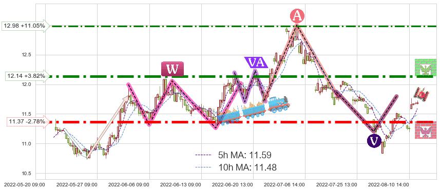 ♘ 阻力价格位12.14,可信任强度90.63%,距离最后交易2022-08-12 14:00形成的收盘价格11.69相差 +3.82%
