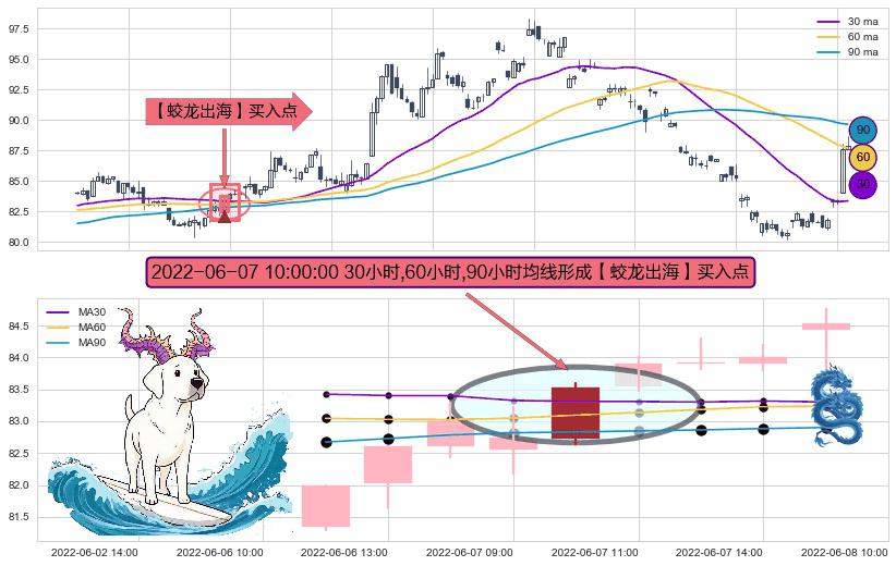 ⚀ 2022-06-07 10:00:00小时显现 30小时-60小时-90小时均线 【蛟龙出海】买入点 看多信号,后市看涨,买入