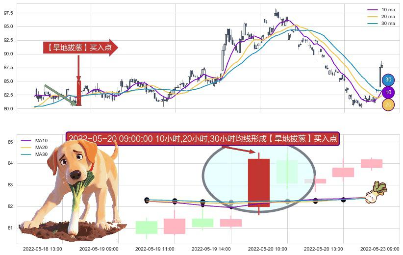 ⚀ 2022-05-20 09:00:00小时显现 10小时-20小时-30小时均线 【旱地拔葱】买入点 看多信号,后市看涨,买入