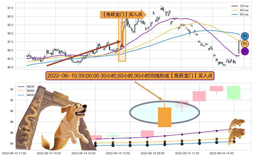 ⚀ 2022-06-15 09:00:00小时显现 30小时-60小时-90小时均线 【鱼跃龙门】买入点 看多信号,后市看涨,买入