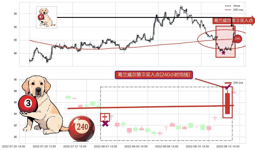 ⚀ 2022-08-12 13:00:00-小时显现 葛兰威尔均线 240小时均线 第③买入点 上升趋势的中继信号,后市看涨,买进信号
