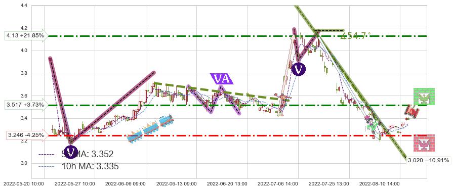 ♘ 阻力价格位3.517,可信任强度59.87%,距离最后交易2022-08-12 14:00形成的收盘价格3.390相差 +3.73%