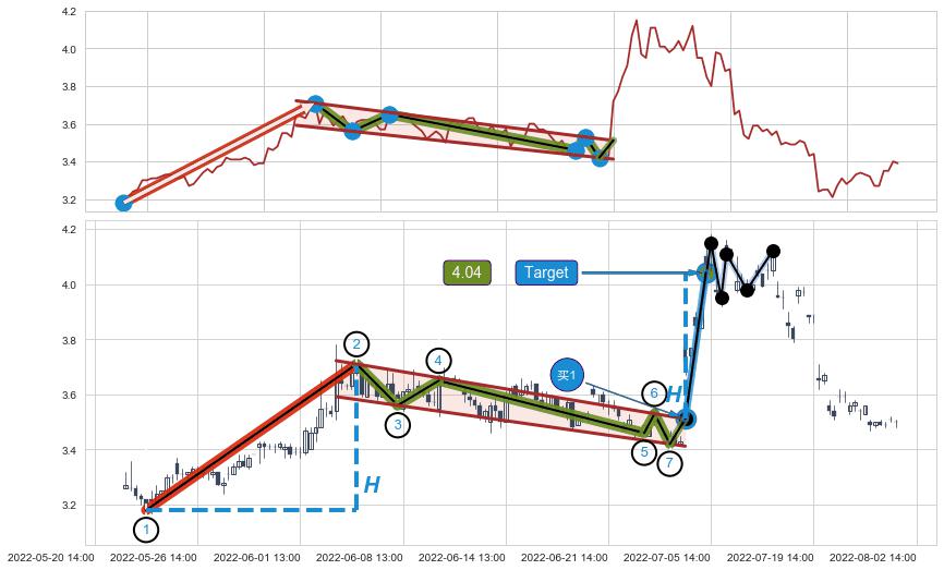 ➣ 最小中继整理涨幅→𝐇: 0.5300 (𝐇旗杆的长度:旗杆起点→顶点)
