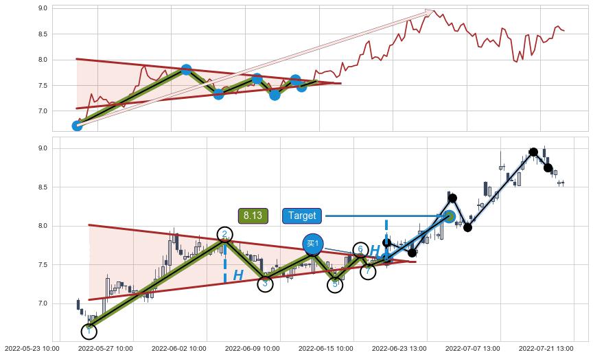 ➣ 08-11:13到达第❷价格目标位置8.62