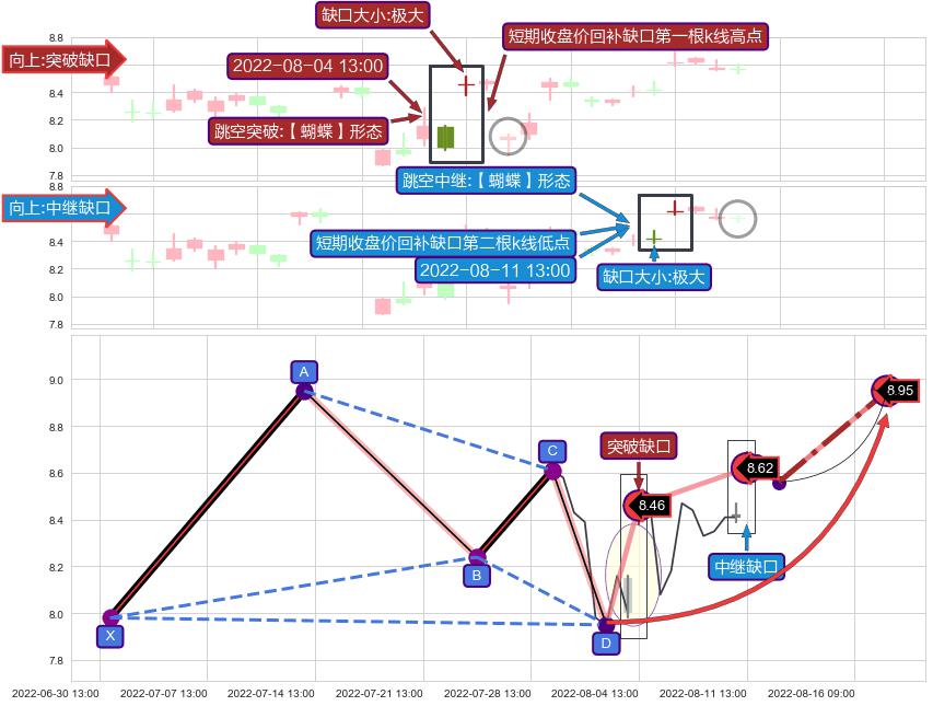 ➢ 2022-08-11 13:00形成:向上跳空【中继】缺口