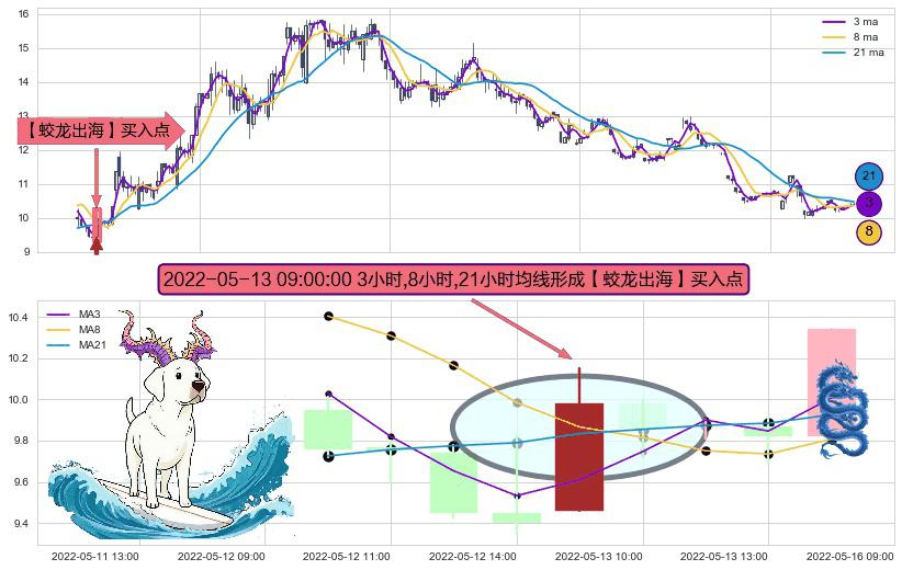 ⚀ 2022-05-13 09:00:00小时显现 3小时-8小时-21小时均线 【蛟龙出海】买入点 看多信号,后市看涨,买入
