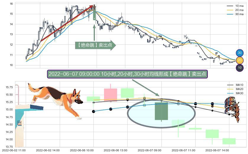 ⚀ 2022-06-07 09:00:00小时显现 10小时-20小时-30小时均线 【绝命跳】卖出点 看空信号,后市看跌,卖出