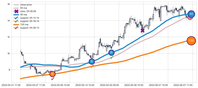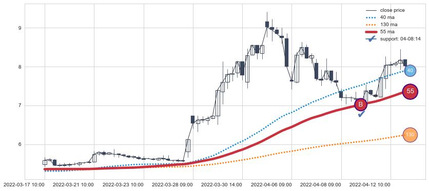 ⚂ 2022-05-13 09:00:00小时突然冒出一根大阳线,一下子顶穿三条均线且收盘价收在各条均线之上