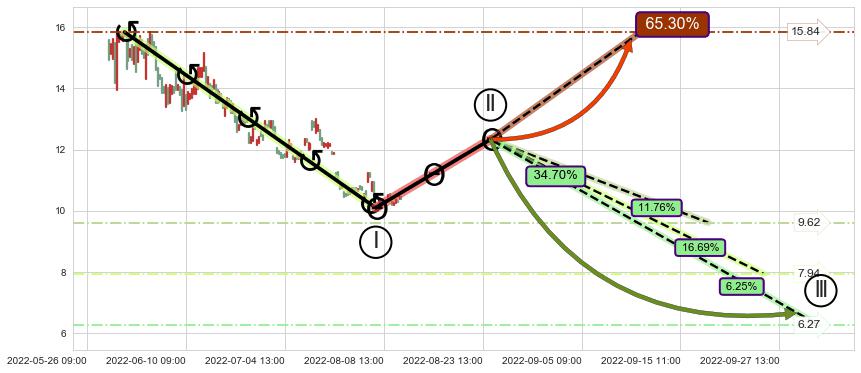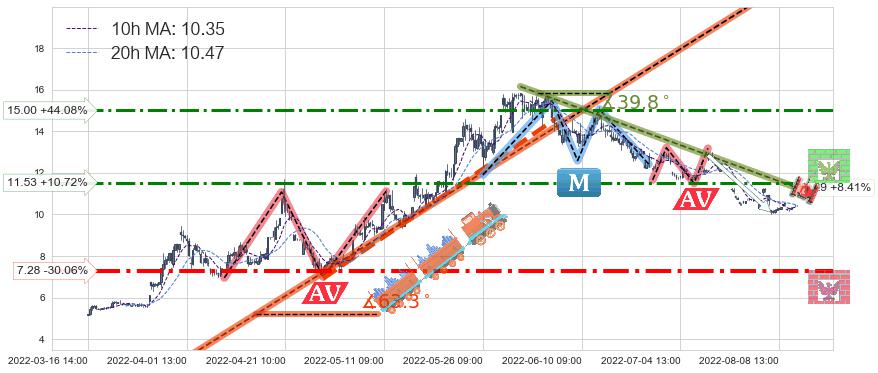♘ 阻力价格位15.00,可信任强度66.93%,距离最后交易2022-08-12 14:00形成的收盘价格10.41相差 +44.08%