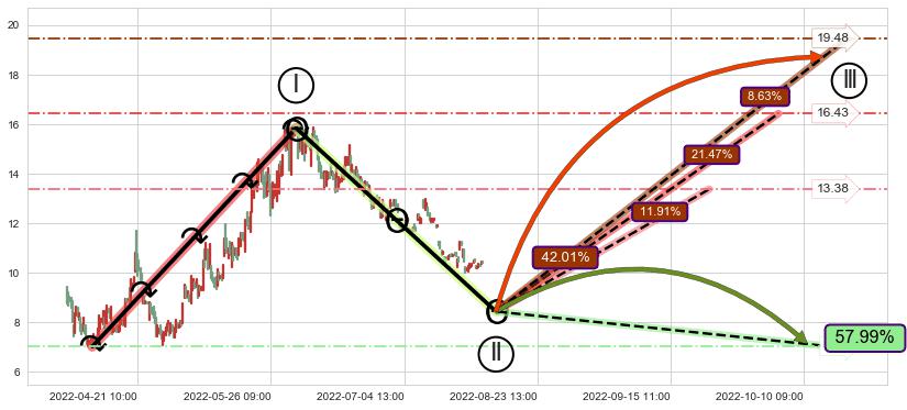 ➢ 循环浪继续向上【最低】位置(09-22:10, 13.38),匹配聚类样本比例28.35%, 可能性概率11.91%