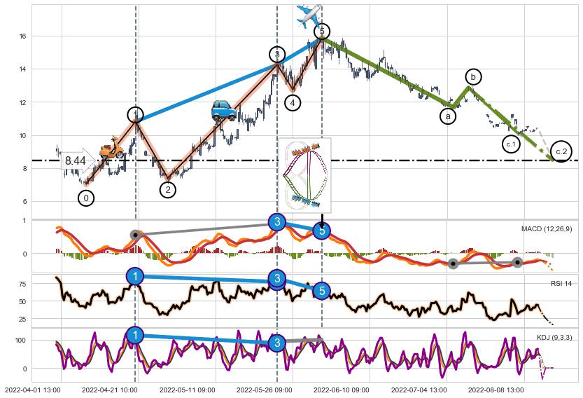 ➣ a,c调整浪MACD, RSI, KDJ走势都【未出现】背离,abc走势延续, 5浪反转概率增强