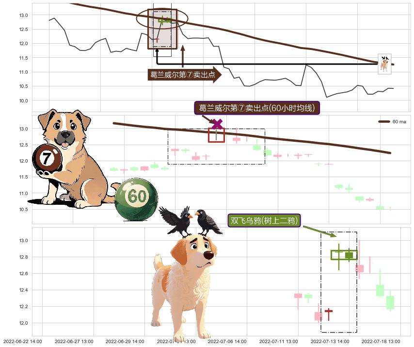 从2022-07-13 13:00至2022-08-12 14:00,共包含46个小时,阶段股价下跌-20.16%,阶段股价变动位移路程比: 1 : 2