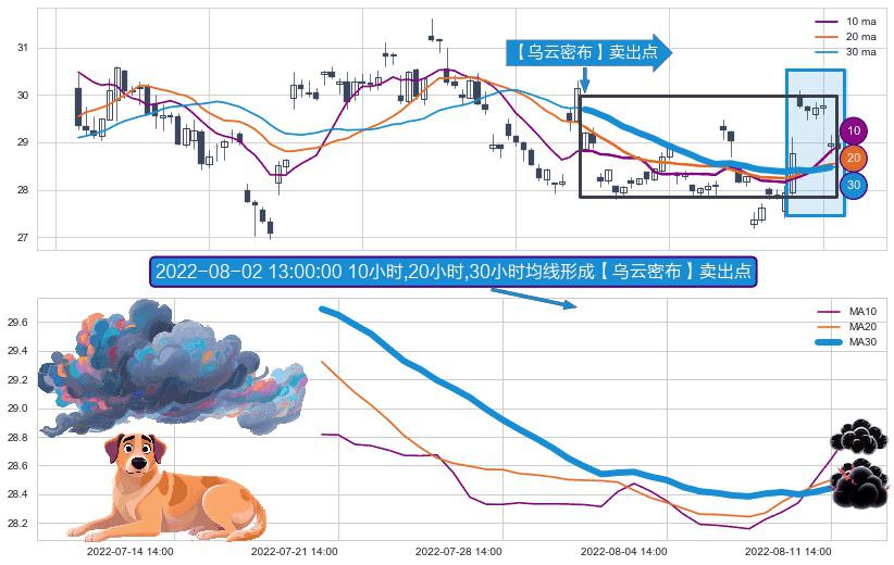 ⚀ 2022-07-21 13:00:00小时-2022-08-12 13:00:00小时显现 10小时-20小时-30小时均线 【乌云密布】卖出点 看空信号,后市看跌,卖出