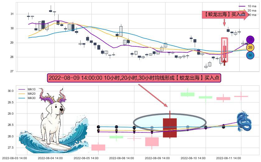 ⚀ 2022-08-09 14:00:00小时显现 10小时-20小时-30小时均线 【蛟龙出海】买入点 看多信号,后市看涨,买入
