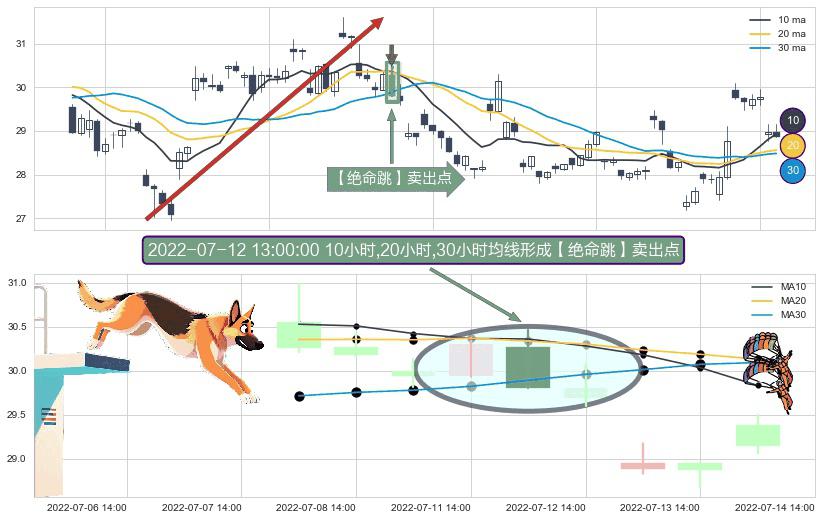 ⚀ 2022-07-12 13:00:00小时显现 10小时-20小时-30小时均线 【绝命跳】卖出点 看空信号,后市看跌,卖出