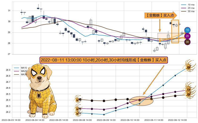 ⚀ 2022-08-11 13:00:00小时显现 10小时-20小时-30小时均线 【金蜘蛛】买入点 看多信号,后市看涨,买入