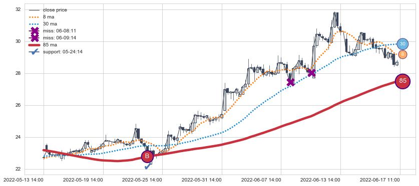 ⚄ 价格在均线获取支撑后已再次向上反弹了【较长】距离, 第②买入点 支撑效果得到【初步确认】