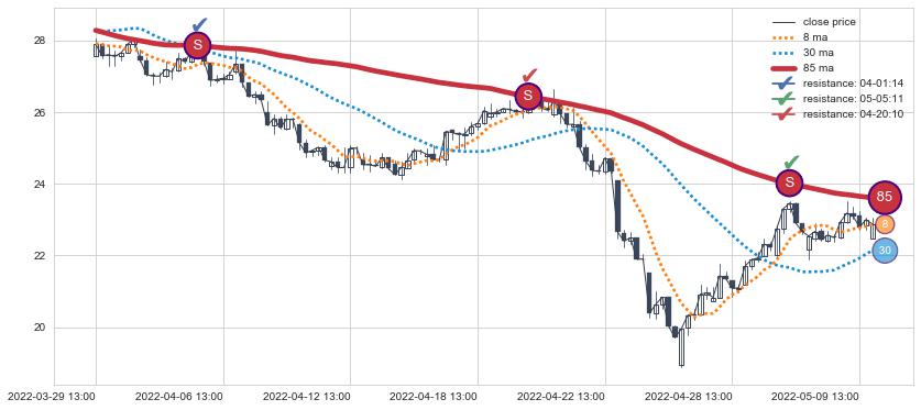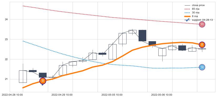 ⚂ 2022-08-09 14:00:00小时突然冒出一根大阳线,一下子顶穿三条均线且收盘价收在各条均线之上