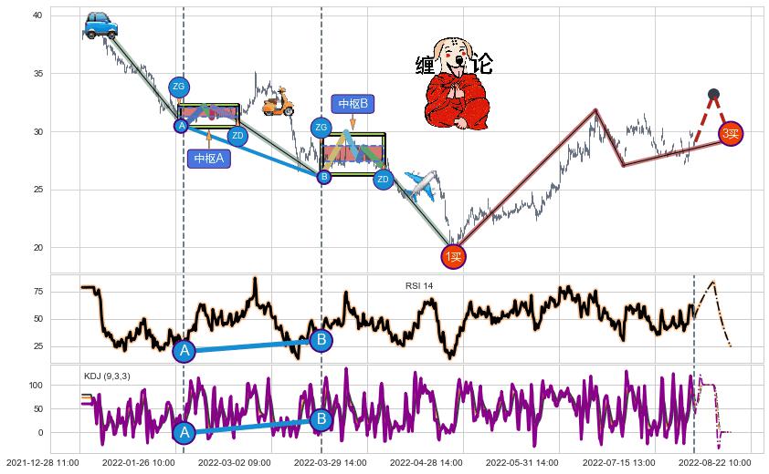➣ 【未完成】缠论 起点:04-26:14, 完成第1中枢A,完成第2中枢B,到达08-12:14