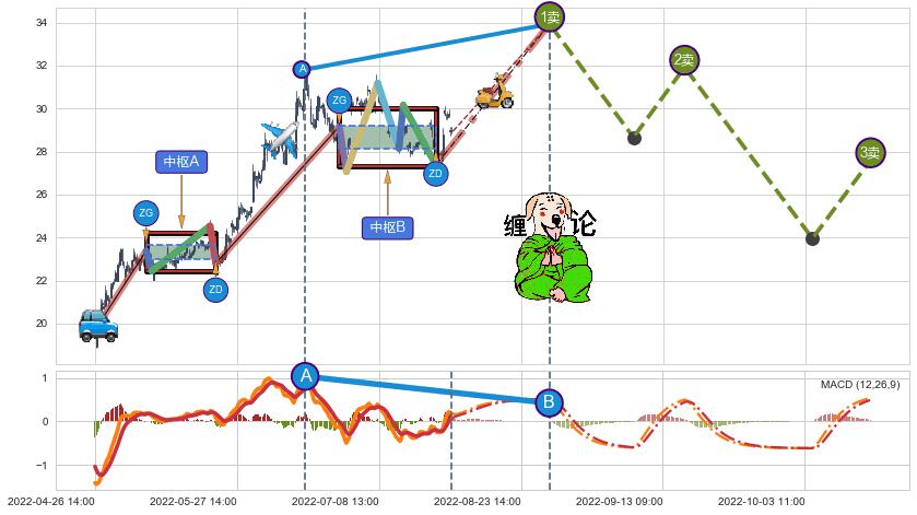 ➢ 缠论价格❶卖比A点高 ⤴,【MACD】指标B点比A点低 ⤵️
