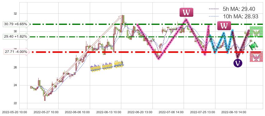 ♘ 阻力价格位30.79,可信任强度81.50%,距离最后交易2022-08-12 14:00形成的收盘价格28.87相差 +6.65%