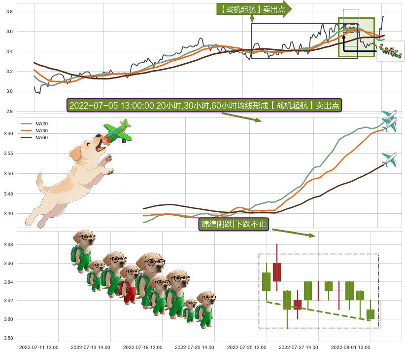 从2022-06-15 13:00至2022-06-30 14:00,共包含30个小时,阶段股价下跌-3.38%,阶段股价变动位移路程比: 1 : 6
