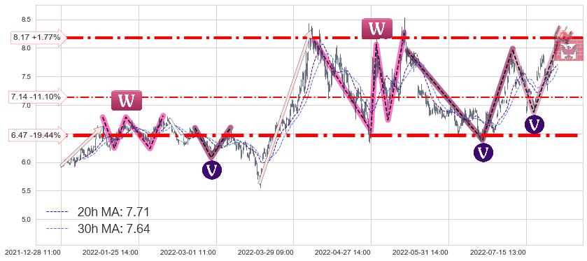 ♞ 20小时均线:7.71,30小时均线:7.64→ 快线>慢线