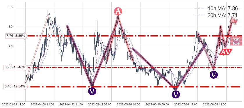 ♞ 10小时均线:7.86,20小时均线:7.71→ 快线>慢线