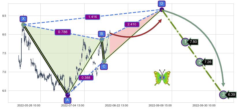 ➣ 未完成【蝴蝶】形态起点X: 05-16:13, 已到达C点: 08-03:14, 预测最终D点: 09-06:13, 共316交易小时