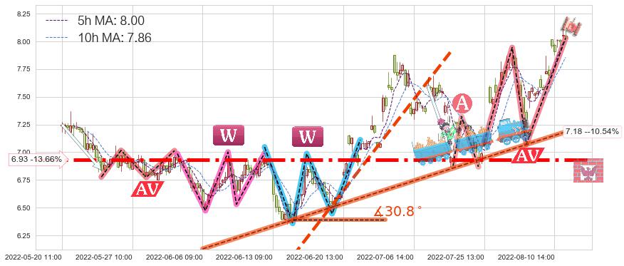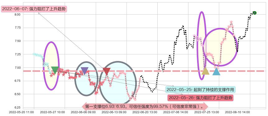 2022-07-22: 第一支撑位6.93有效抑制了下跌浪,成功阻止了价格的继续下跌。