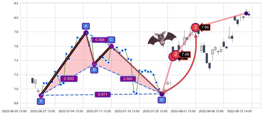 ➣ 已达成看涨【蝙蝠】形态全部的预期目标