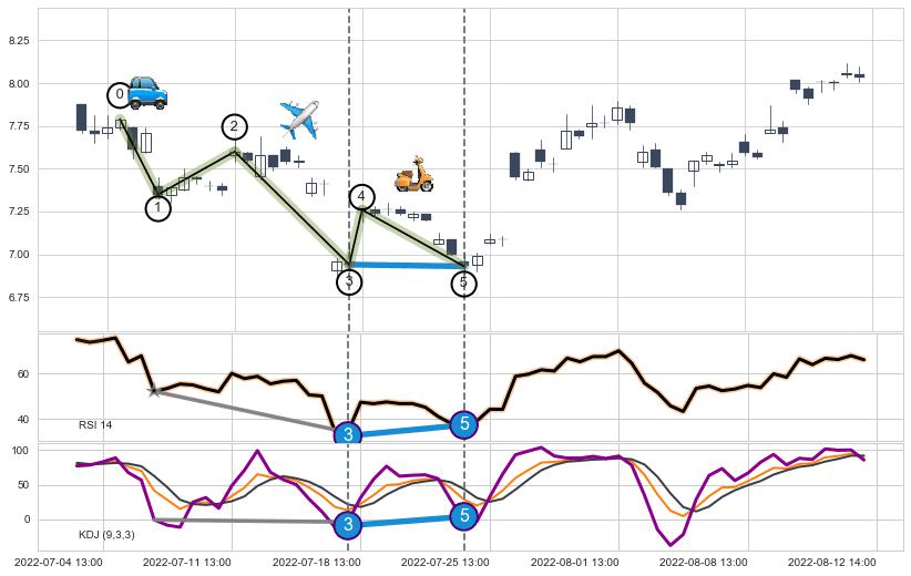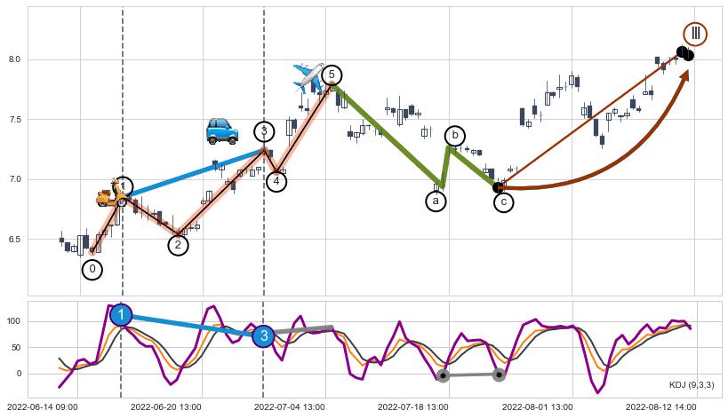 从2022-07-22 13:00至2022-08-12 14:00,共包含32个小时,阶段股价上涨15.14%,阶段股价变动位移路程比: 1 : 2