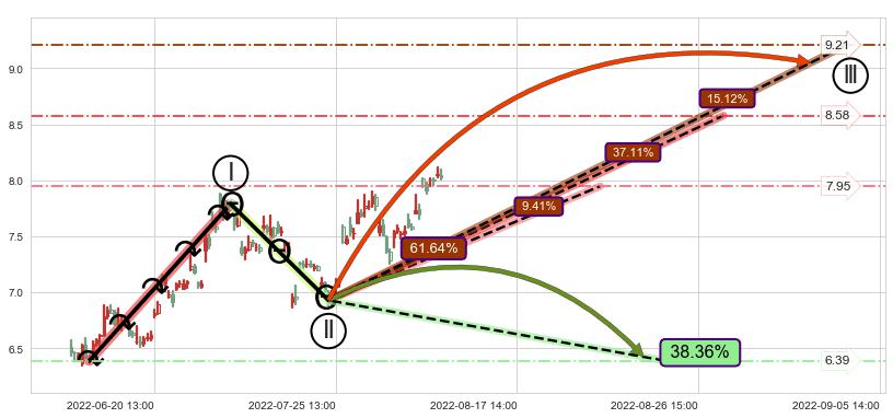 ➢ 循环浪继续向上【最低】位置(08-23:09, 7.95),匹配聚类样本比例15.26%, 可能性概率9.41%