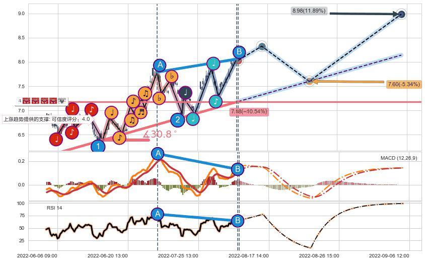 ➢ 预测:2022-09-06 12:00,【继续上扬】稳定目前上涨趋势的前提下,预测价格:8.98