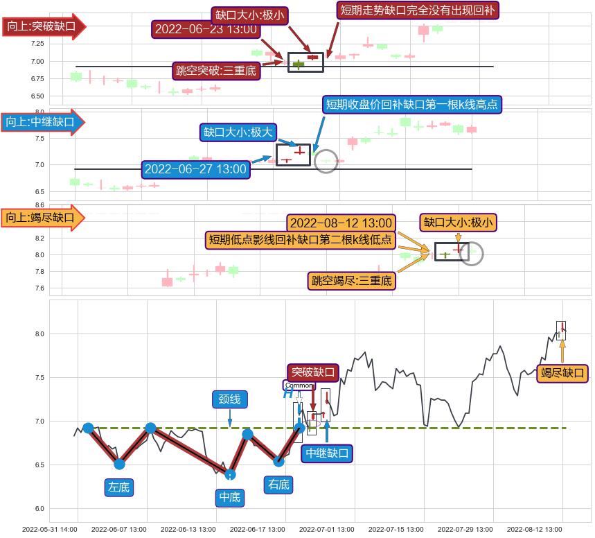 ➢ 2022-08-12 13:00形成:向上跳空【竭尽】缺口